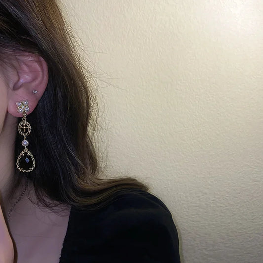 Vintage Black Color Flower Drop Earrings For Women Gothic Geometric Butterfly Heart Wings Earring Party Jewelry